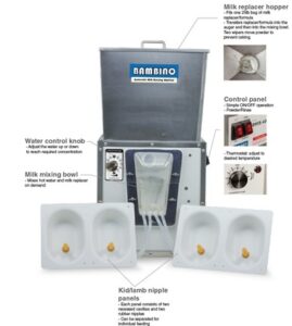 - BAMBINO feeders support the early removal of kids from milking herds by providing a feeding solution that seamlessly supports a kid’s natural feeding instinct.